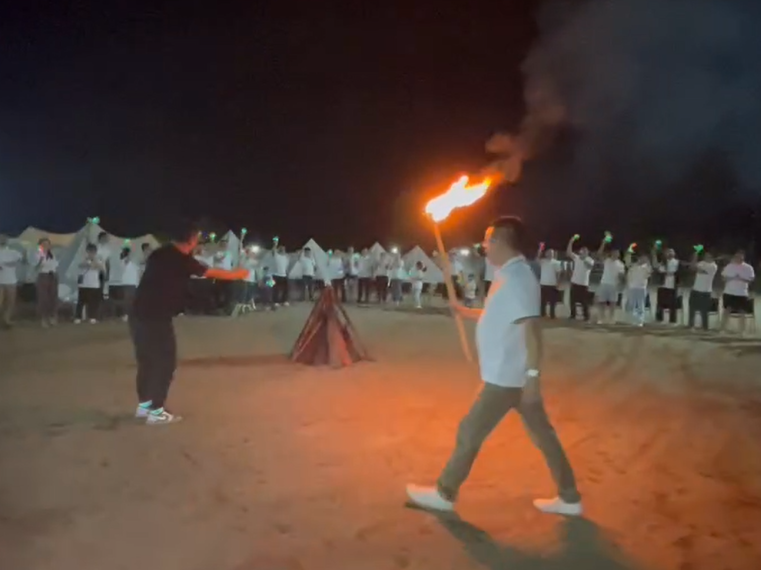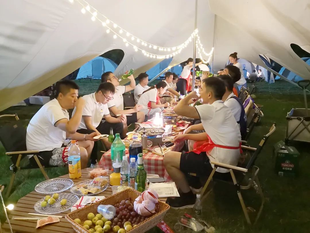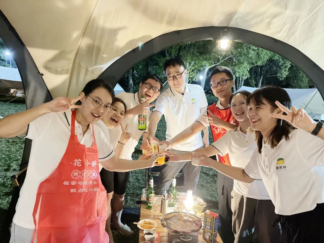 在飞盘比赛中,大家协作练习,每人击中目标盘对应分数为单人成绩,累计每人最高成绩为小组成绩,每当有人击中,场上都响起热烈的欢呼声。在龙舟竞渡中,大家同心协力、勇争第一,迅速抵达终点。这些活动让全体员工体会到团队协作与信任的重要性,也营造轻松的活动氛围,充分展示馨雅林全体员工的风采。 夜幕降临,所有人都亲自体验野营烧烤的乐趣。篝火晚会开始,公司总经理杨建举起熊熊燃烧的火把,亲手点燃篝火,主持人带领大家进行趣味游戏与舞蹈,在欢快的晚会气氛中,灿烂的烟花在夜空绽放,众人手持烟花棒,共同祝愿馨雅林的未来如篝火般热烈红火,如烟花般绚烂夺目。 此次团建活动不仅提高了馨雅林大家庭的凝聚力,更提升了全体员工意气风发、肩负企业发展责任的士气。未来可期,不负韶华,期待馨雅林在光伏新能源行业发光发热、奉献力量。